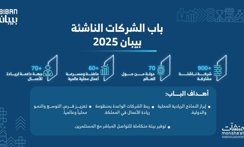 تشارك أكثر من (900) شركة ناشئة من مختلف دول العالم في “باب الشركات الناشئة” ضمن فعاليات ملتقى “بيبان 2025″، الذي تنظمه الهيئة العامة للمنشآت الصغيرة والمتوسطة “منشآت” خلال الفترة من 5 إلى 8 نوفمبر المقبل في مركز واجهة الرياض للمعارض والمؤتمرات، تحت شعار “وجهة عالمية للفرص”.